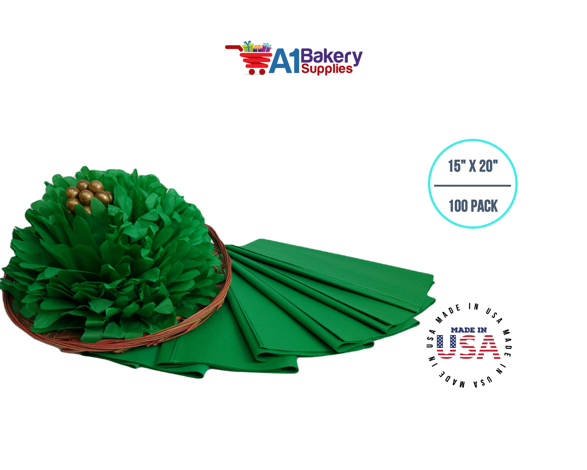Kelly Green Tissue Paper Squares, Bulk 100 Sheets, Premium Gift Wrap and Art Supplies for Birthdays, Holidays, or Presents by A1BakerySupplies, Large 15 Inch x 20 Inch