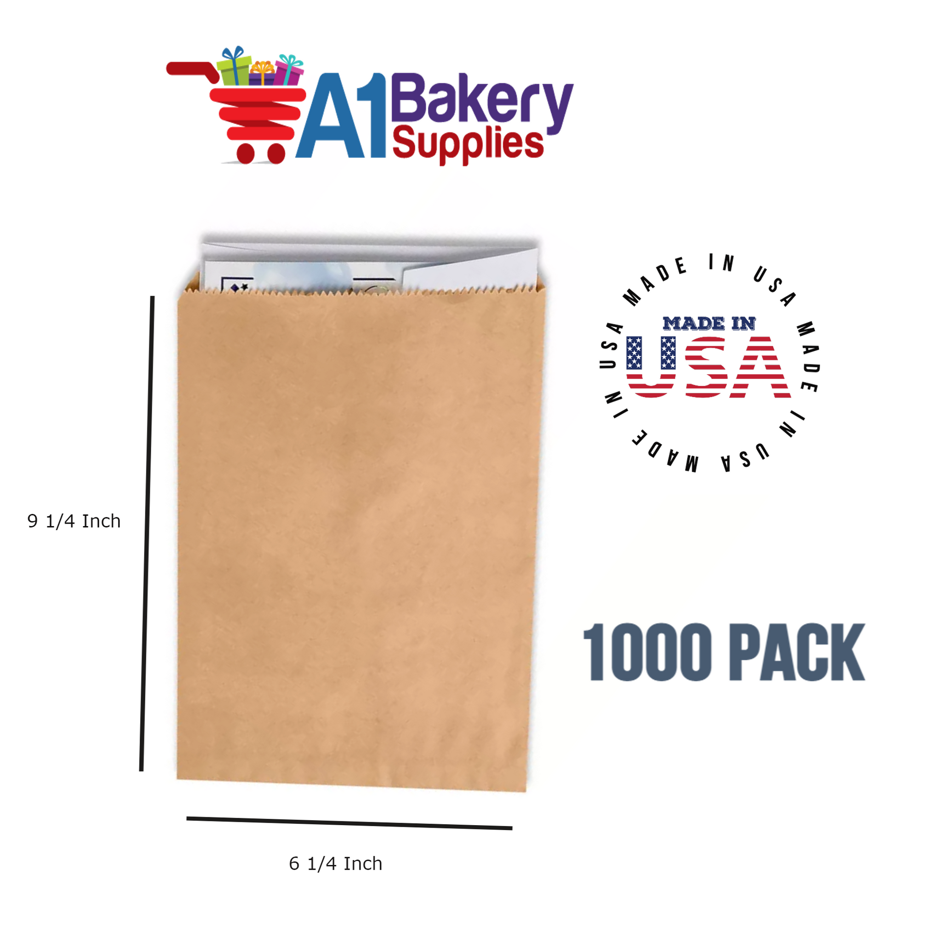 - Each Kraft Flat Merchandise bag measures 6-1/4"x9-1/4" inches. Each set includes 1000 pack brown paper.