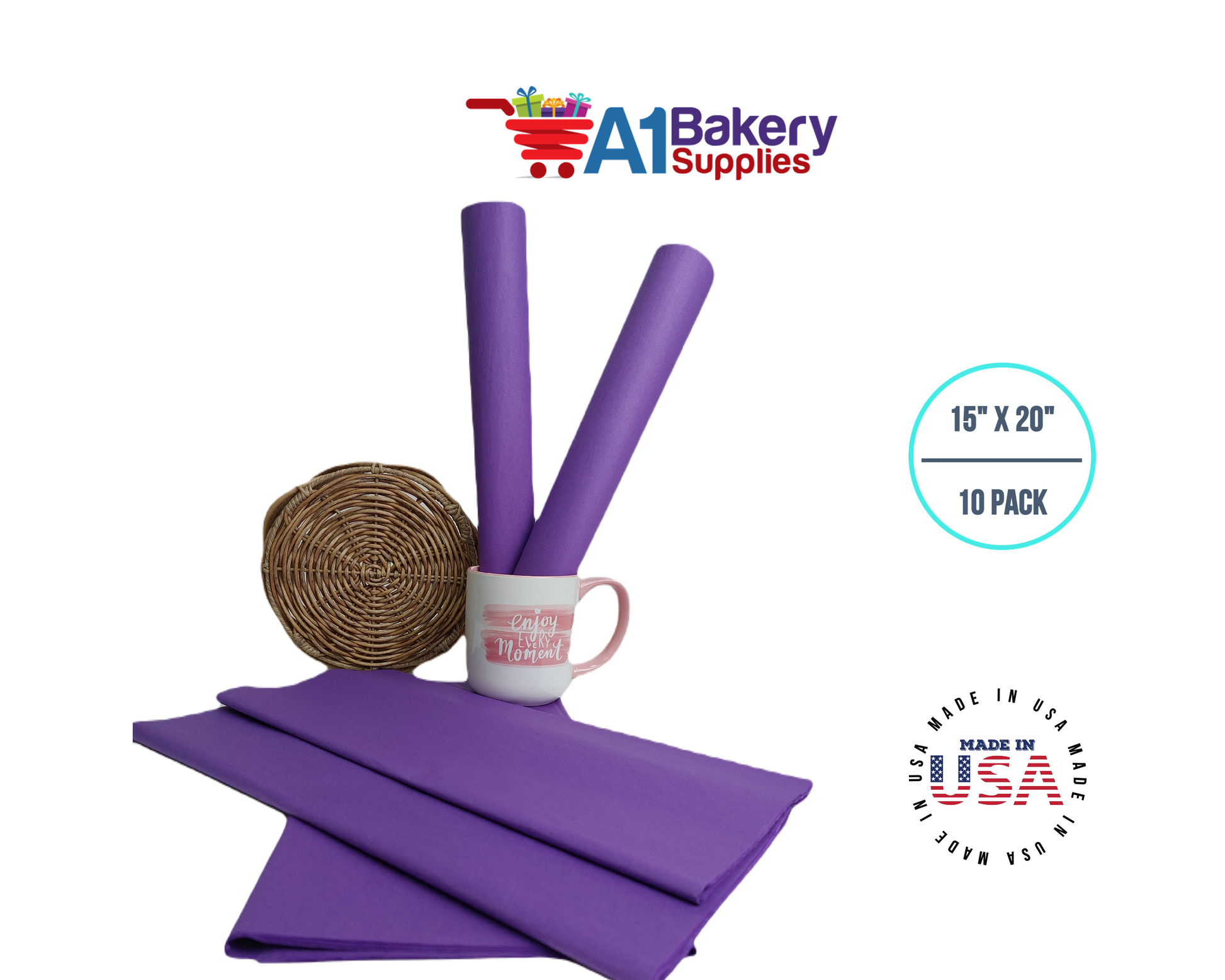Lavender Tissue Paper Squares, Bulk 10 Sheets, Premium Gift Wrap and Art Supplies for Birthdays, Holidays, or Presents by A1BakerySupplies, Small 15 Inch x 20 Inch