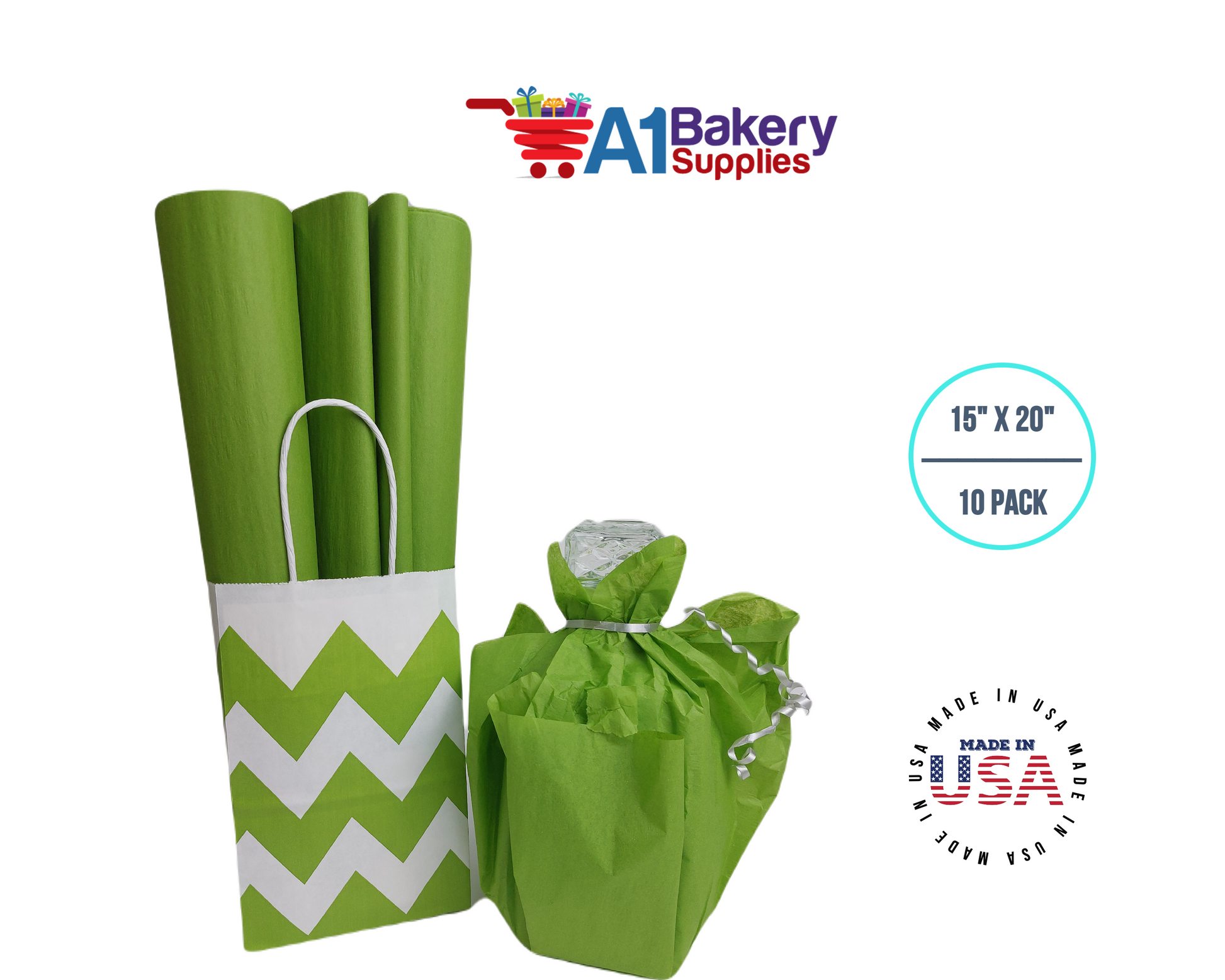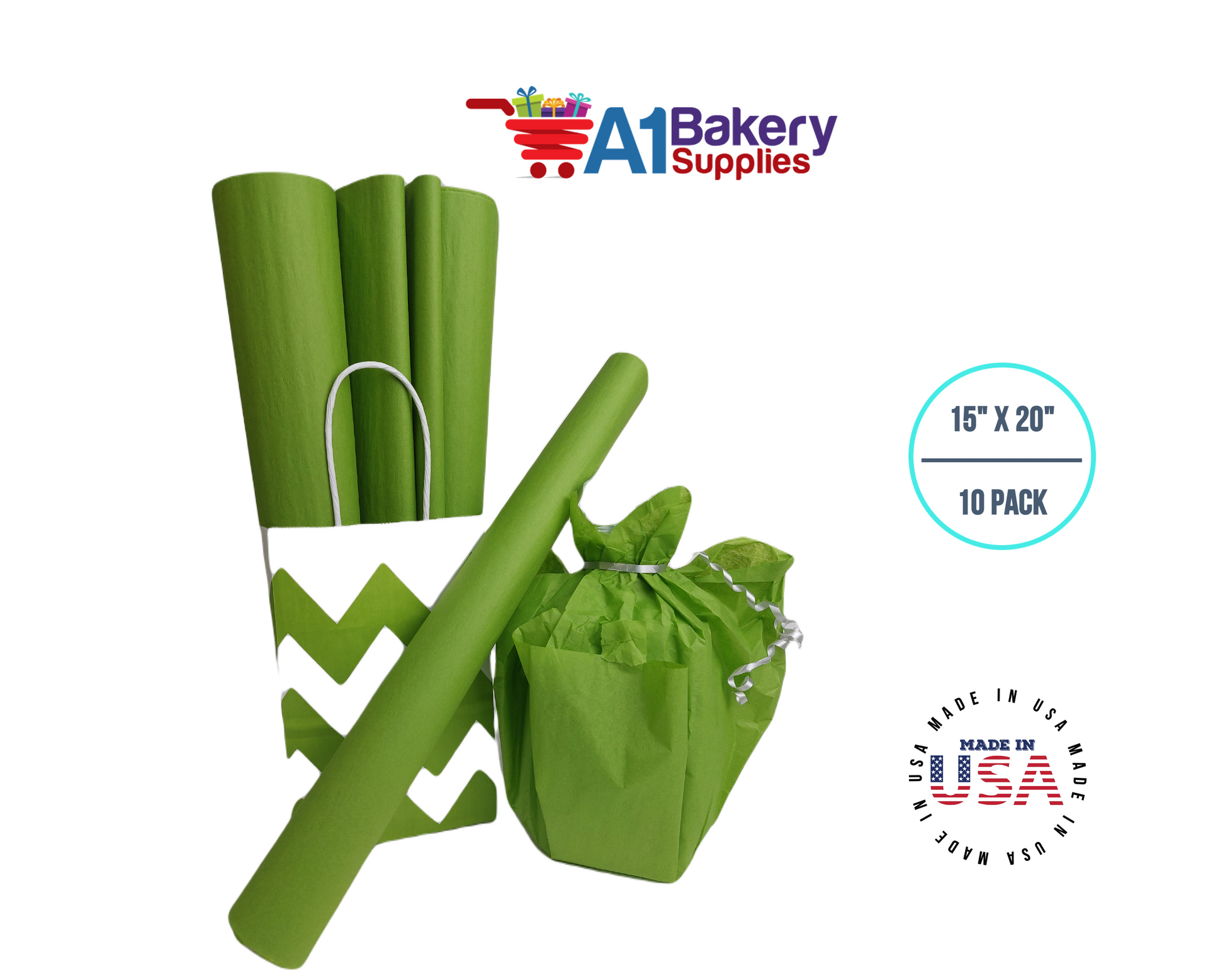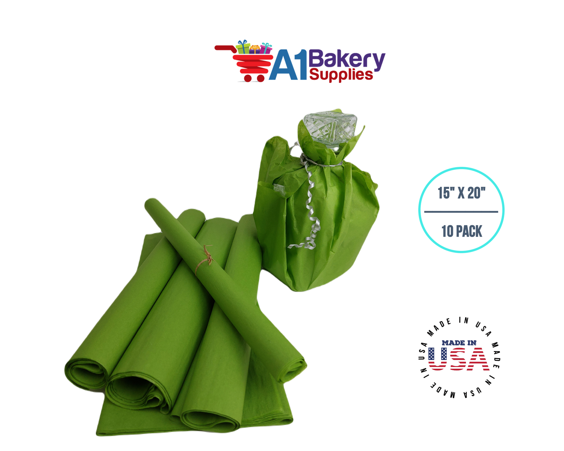 Oasis Green Tissue Paper Squares, Bulk 10 Sheets, Premium Gift Wrap and Art Supplies for Birthdays, Holidays, or Presents by A1BakerySupplies, Large 15 Inch x 20 Inch
