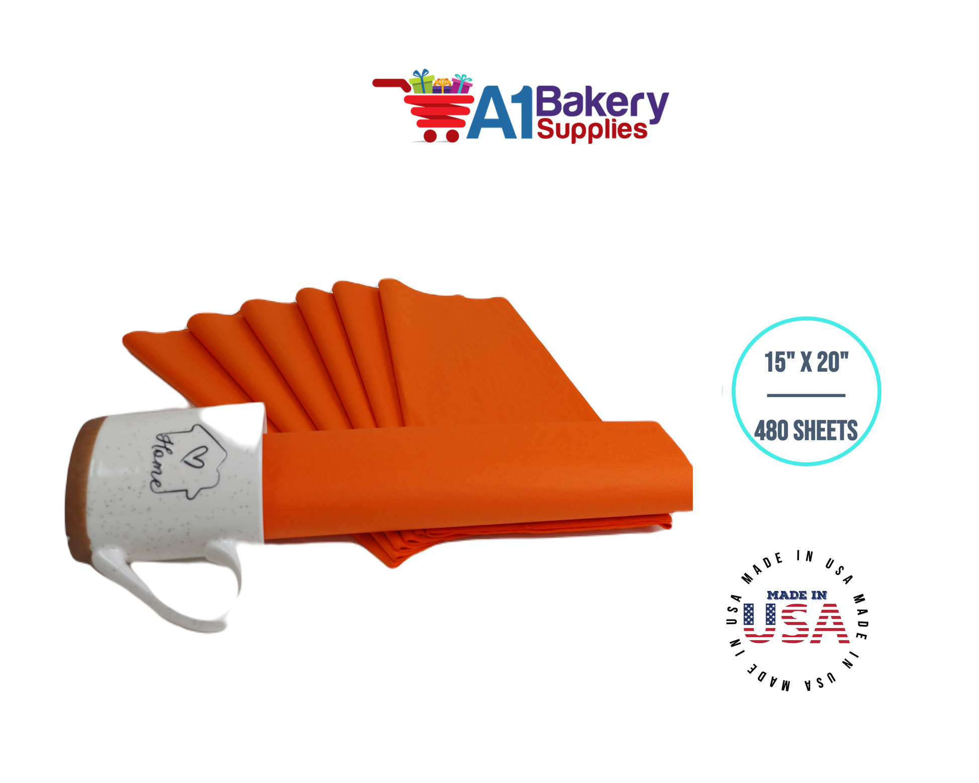 Orange Tissue Paper Squares, Bulk 480 Sheets, Premium Gift Wrap and Art Supplies for Birthdays, Holidays, or Presents by A1BakerySupplies, Large 15 Inch x 20 Inch