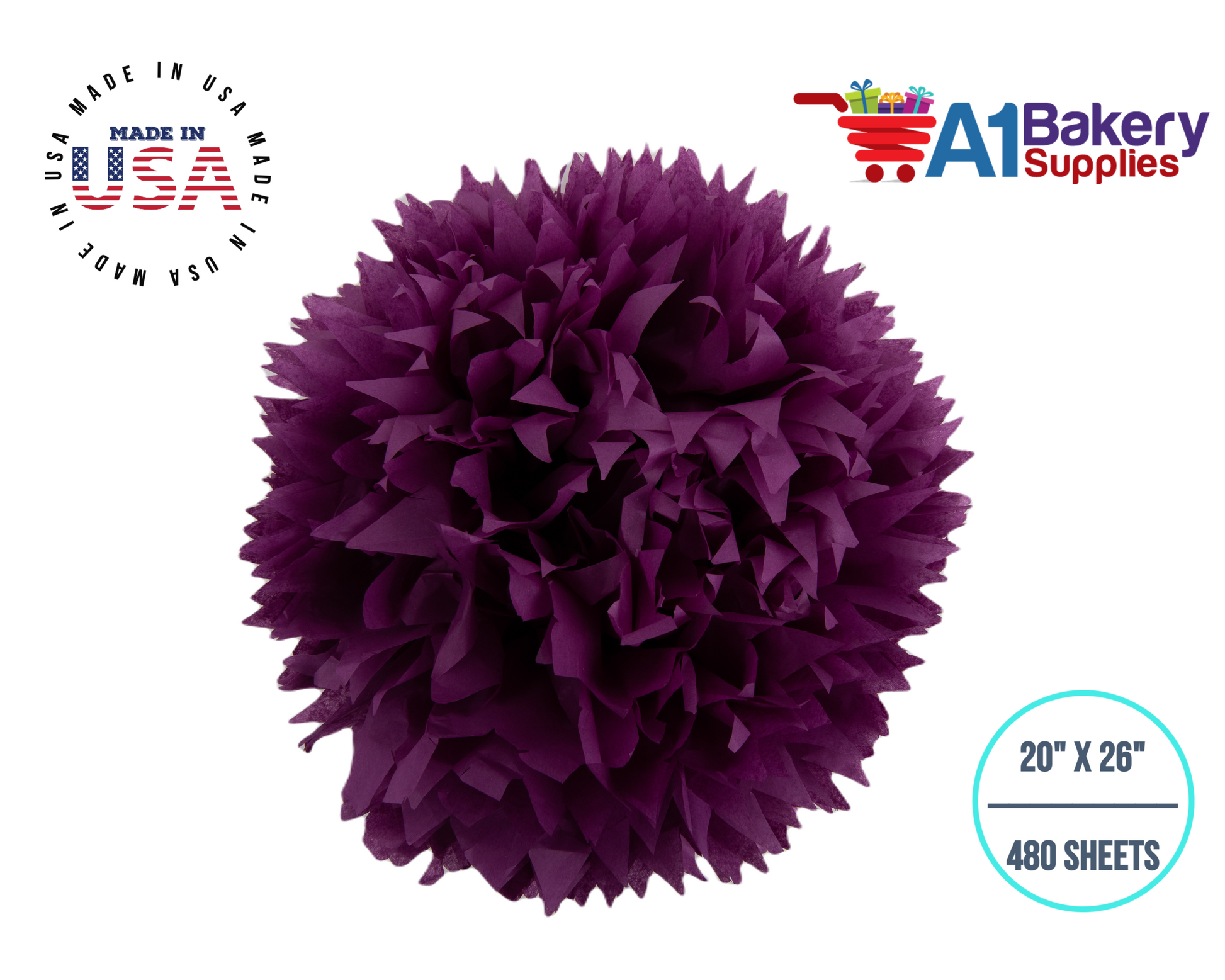 Plum Tissue Paper Squares, Bulk 480 Sheets, Premium Gift Wrap and Art Supplies for Birthdays, Holidays, or Presents by A1BakerySupplies, Large 20 Inch x 26 Inch