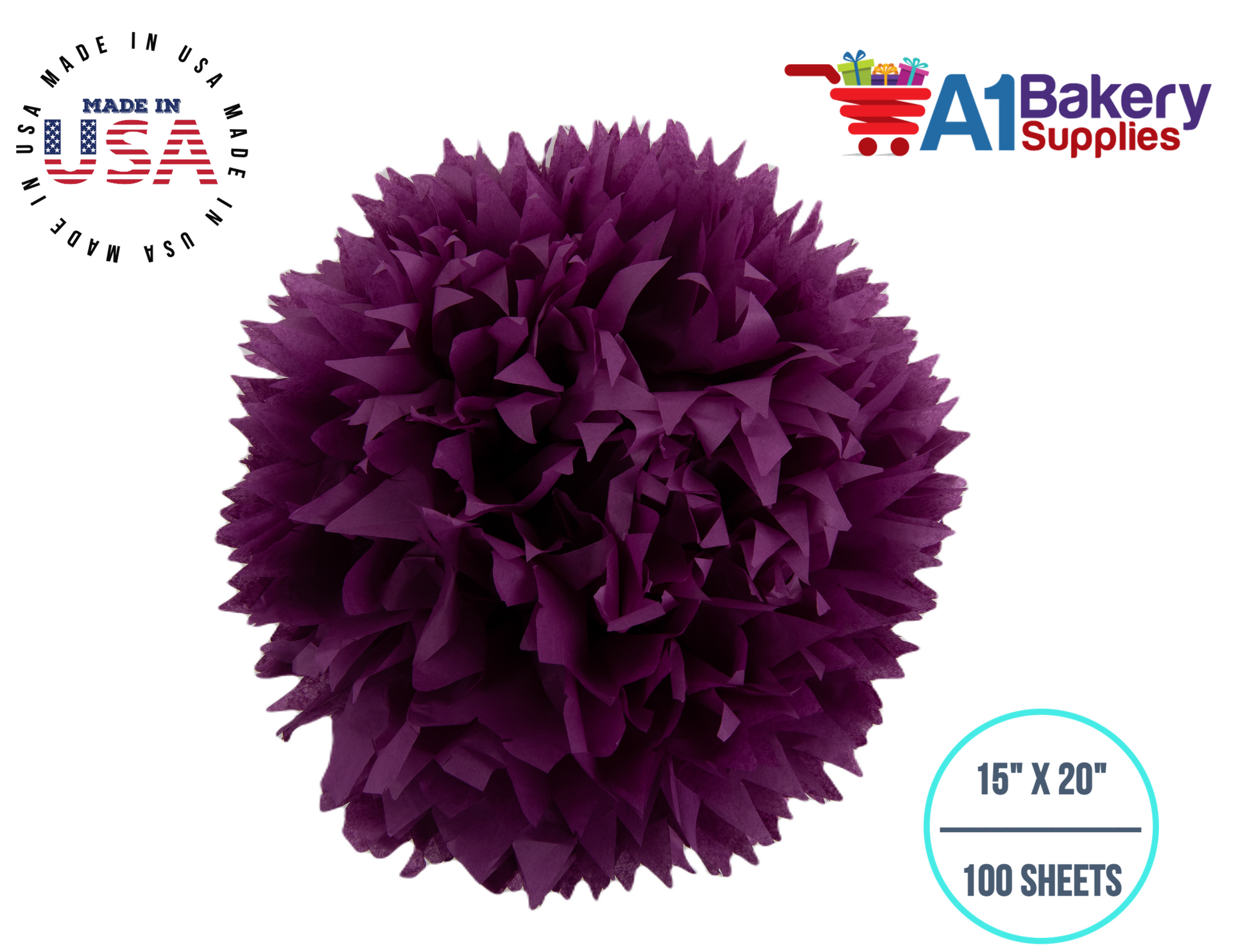 Plum Tissue Paper Squares, Bulk 100 Sheets, Premium Gift Wrap and Art Supplies for Birthdays, Holidays, or Presents by A1BakerySupplies, Medium 15 Inch x 20 Inch