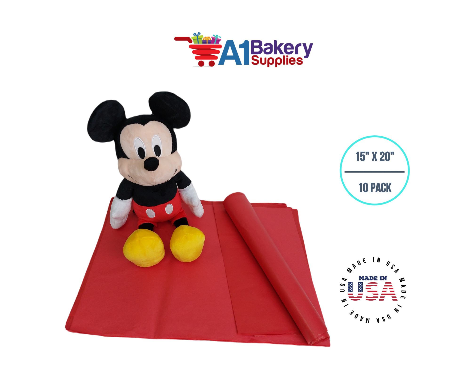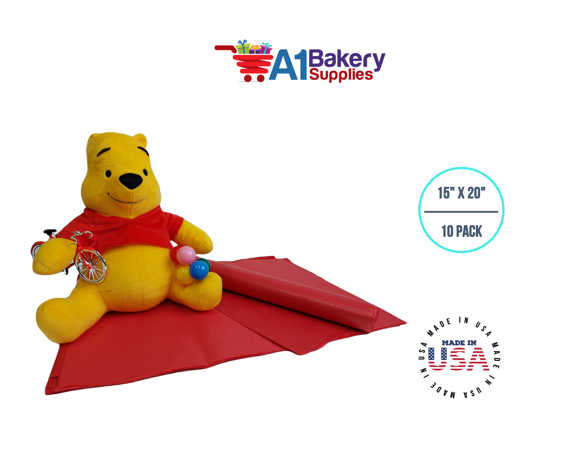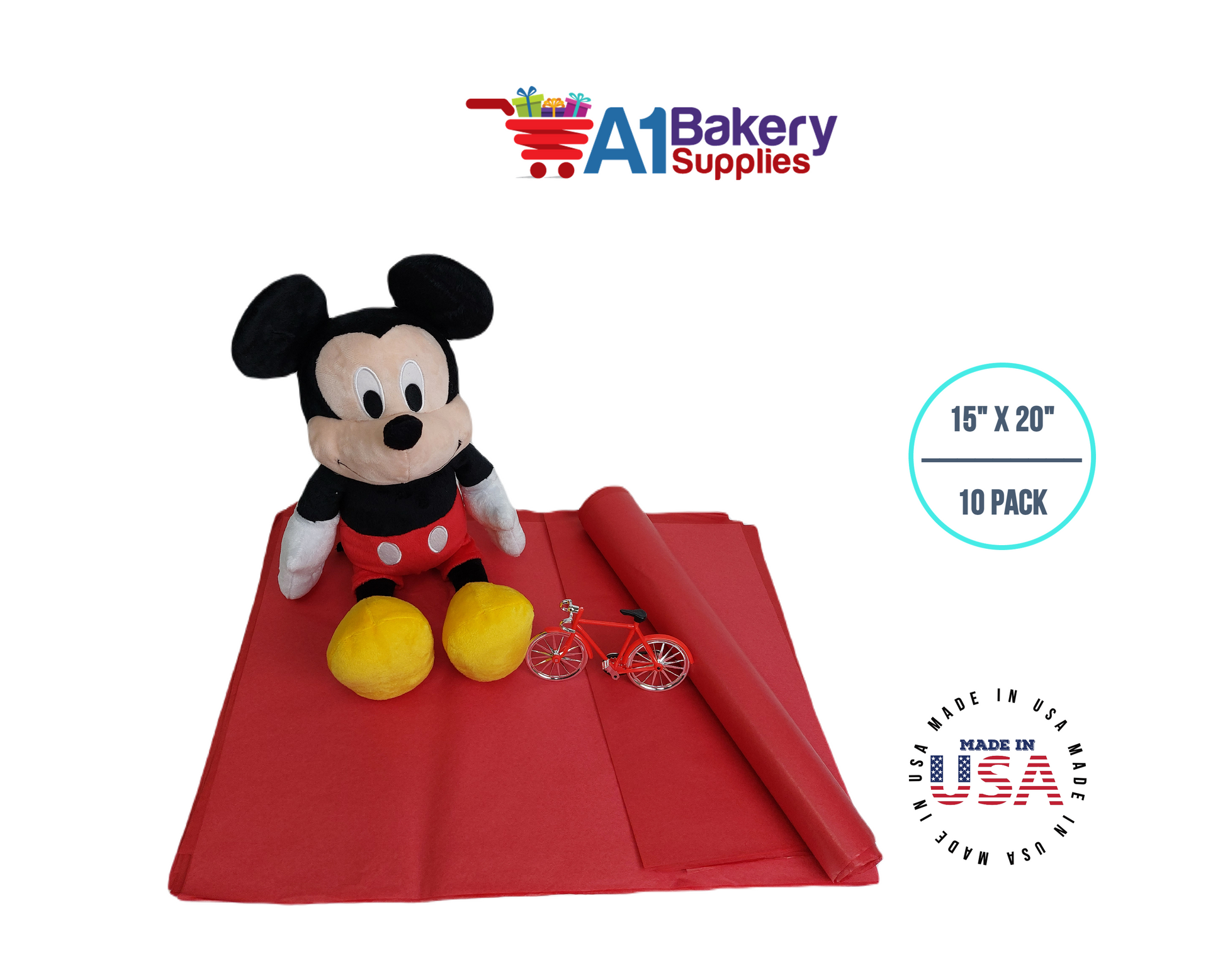 Red Tissue Paper Squares, Bulk 10 Sheets, Premium Gift Wrap and Art Supplies for Birthdays, Holidays, or Presents by A1BakerySupplies, Large 15 Inch x 20 Inch