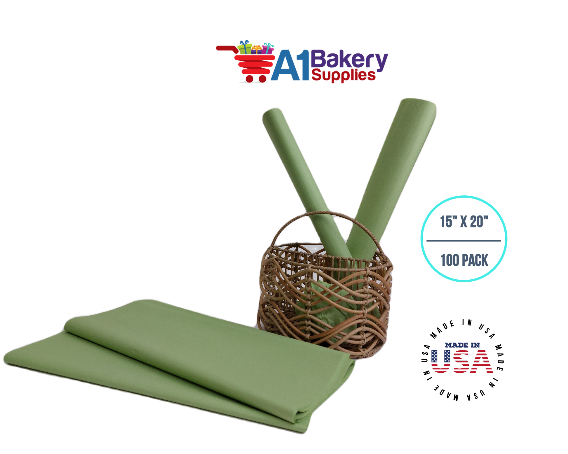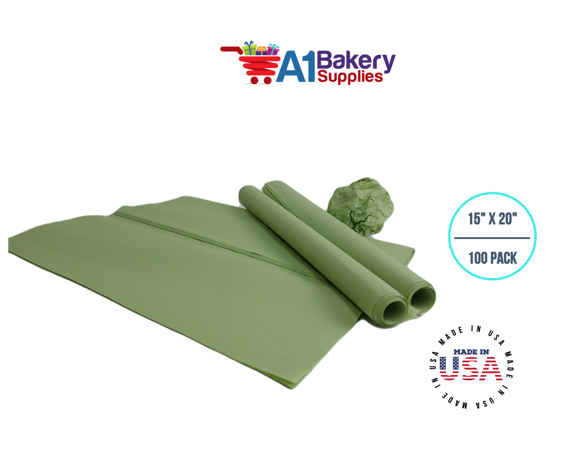 Sage Tissue Paper Squares, Bulk 100 Sheets, Premium Gift Wrap and Art Supplies for Birthdays, Holidays, or Presents by A1BakerySupplies, Medium 15 Inch x 20 Inch