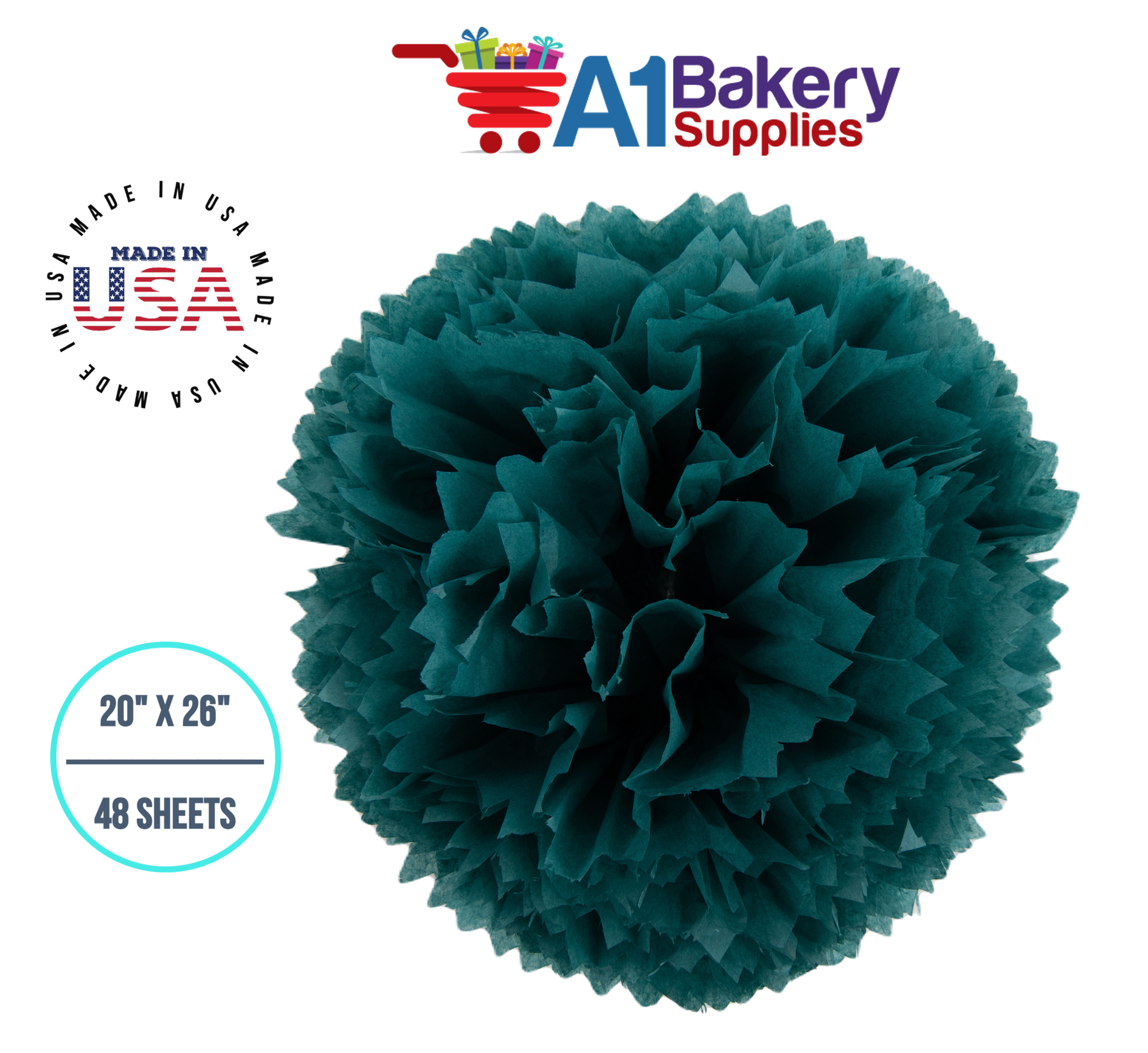 Teal Tissue Paper Squares, Bulk 48 Sheets, Premium Gift Wrap and Art Supplies for Birthdays, Holidays, or Presents by A1BakerySupplies, Medium 20 Inch x 26 Inch