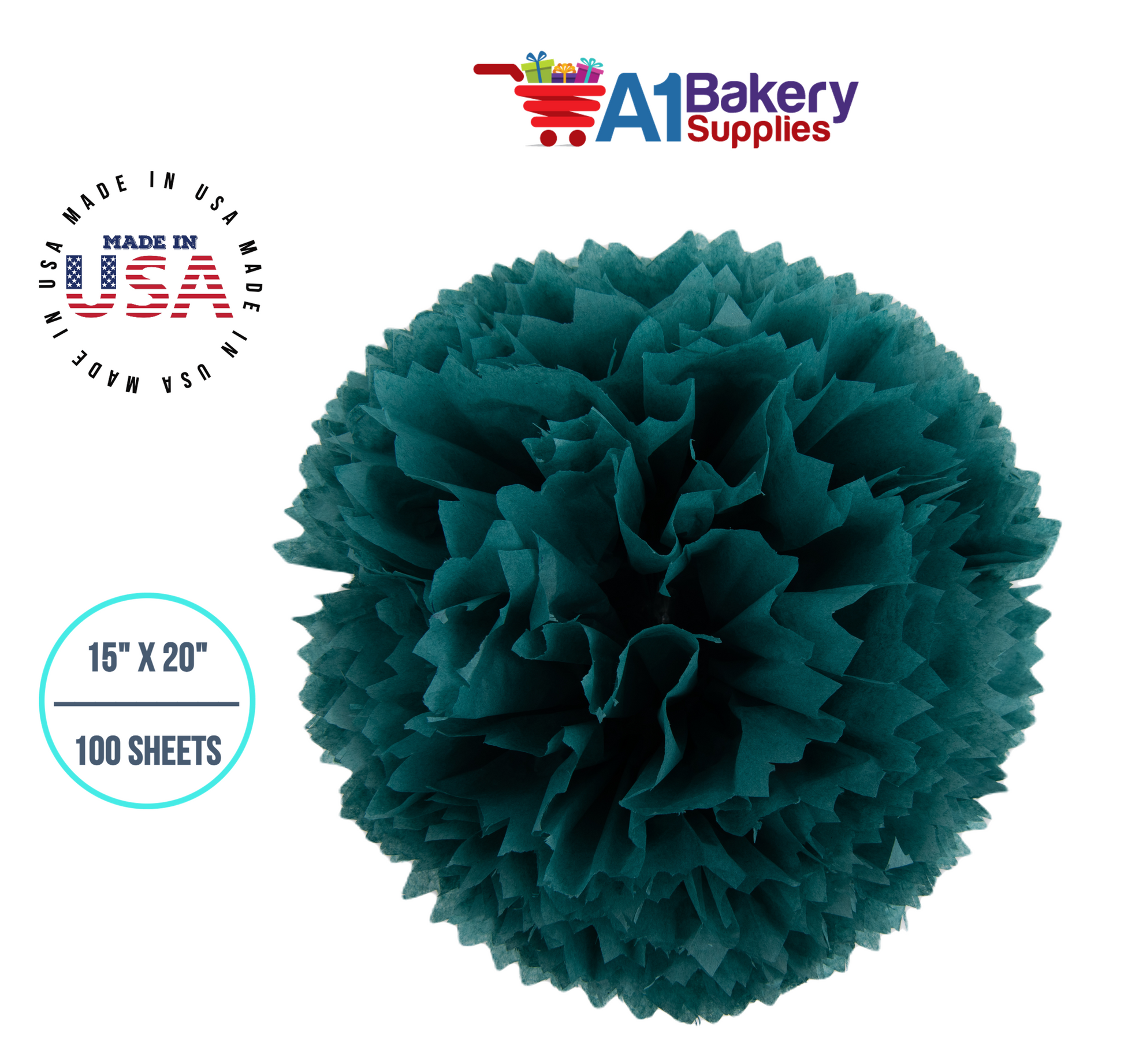 Teal Tissue Paper Squares, Bulk 100 Sheets, Premium Gift Wrap and Art Supplies for Birthdays, Holidays, or Presents by A1BakerySupplies, Medium 15 Inch x 20 Inch