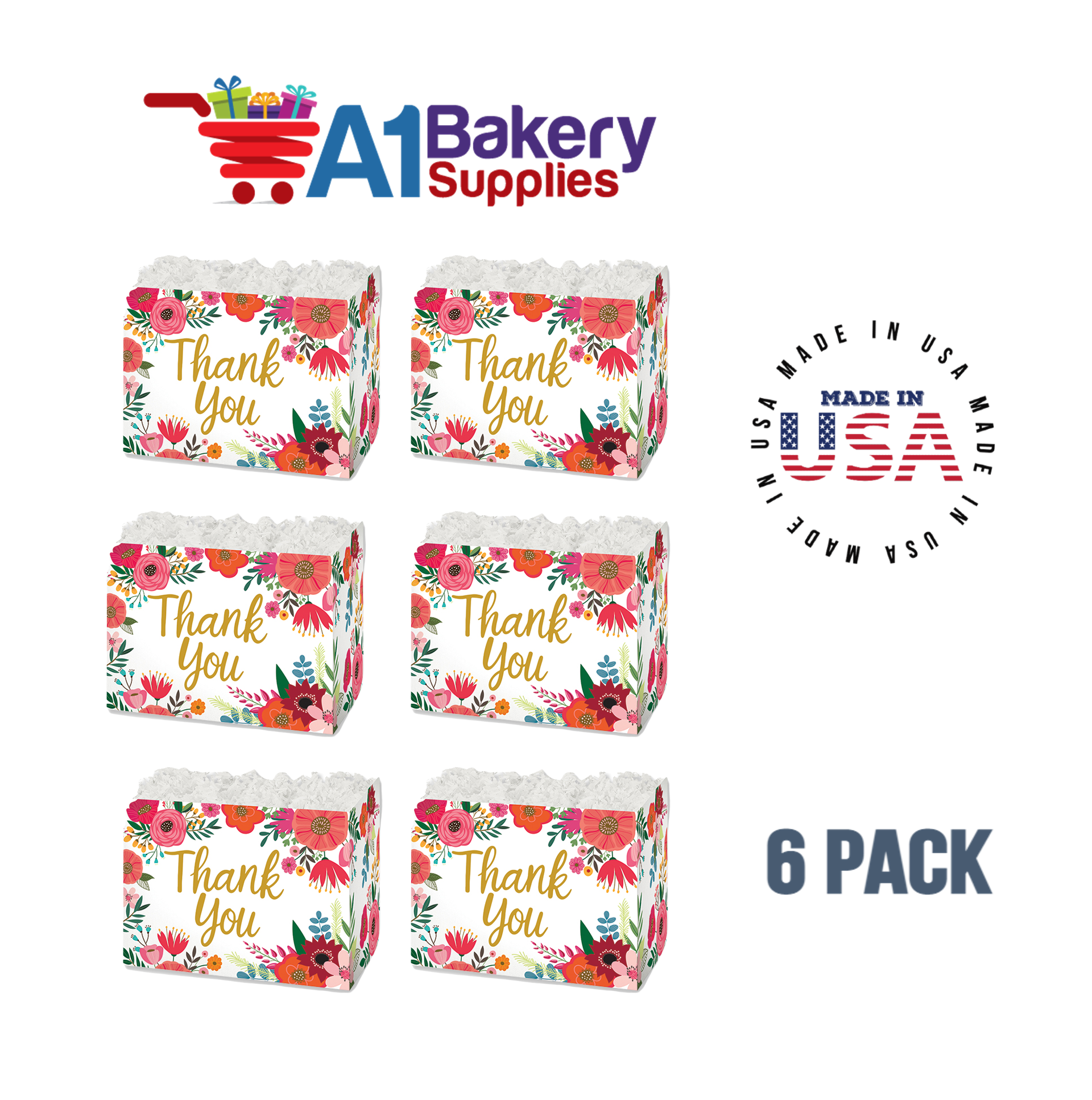 - Each Box comes with totally 6 Pack Small Boxes. Each Thank You Flowers Basket Box Measures 6.75 (Length) x 4 (Width) x 5 (Height)
